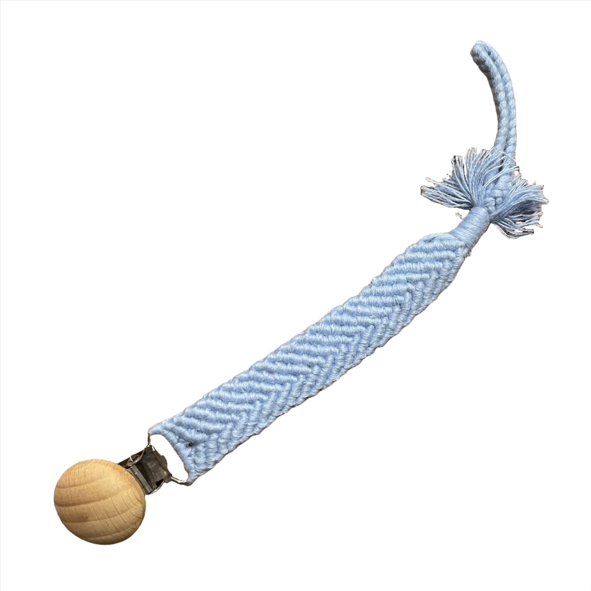 Elevate your parenting game with our Macrame Pacifier Clip. Made with durable cotton and a stylish weaved design, this clip will keep your baby's pacifier safe and secure. The clip provides a strong hold without damaging clothing. Say goodbye to lost pacifiers and hello to convenience and peace of mind.
